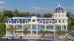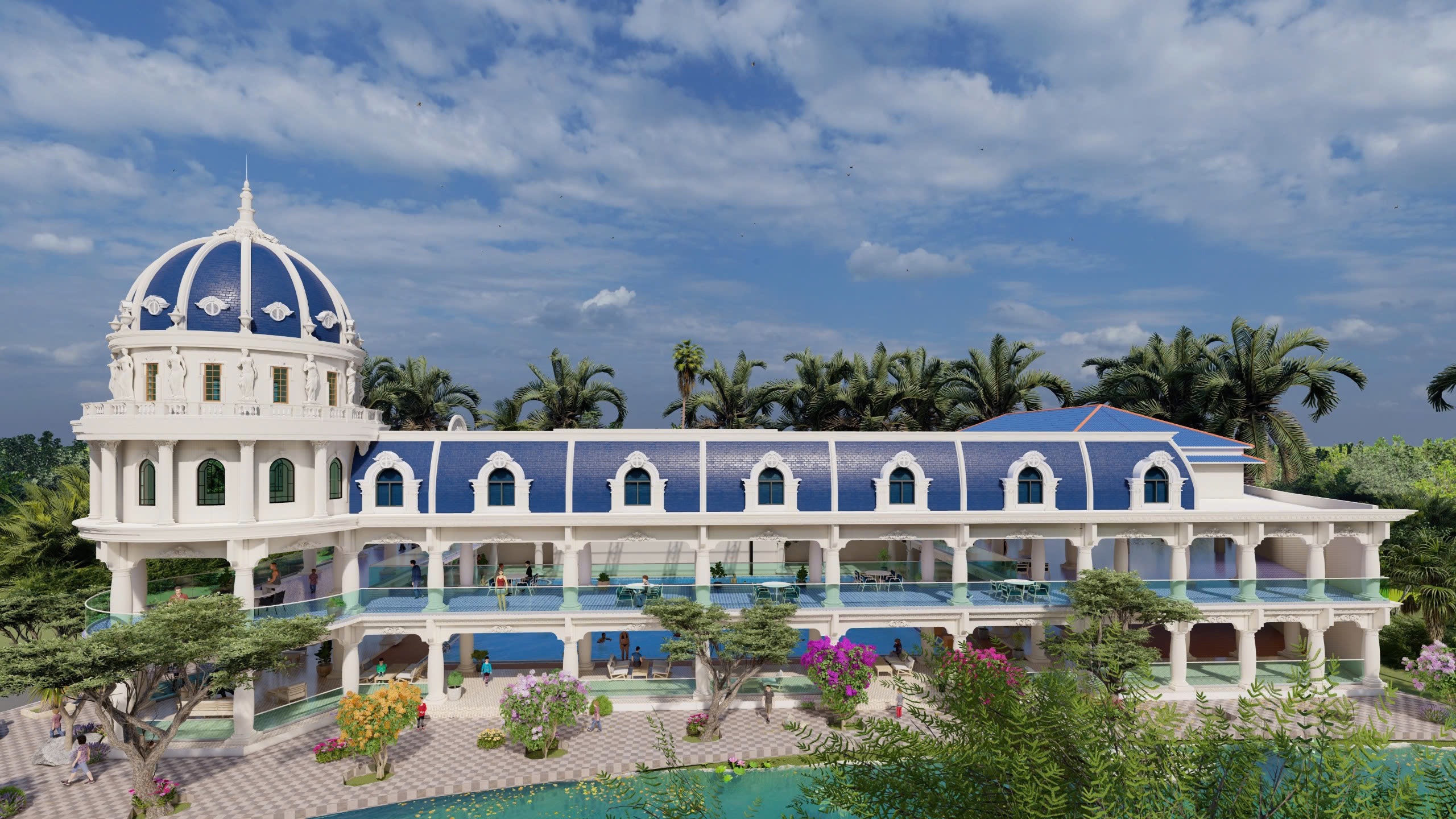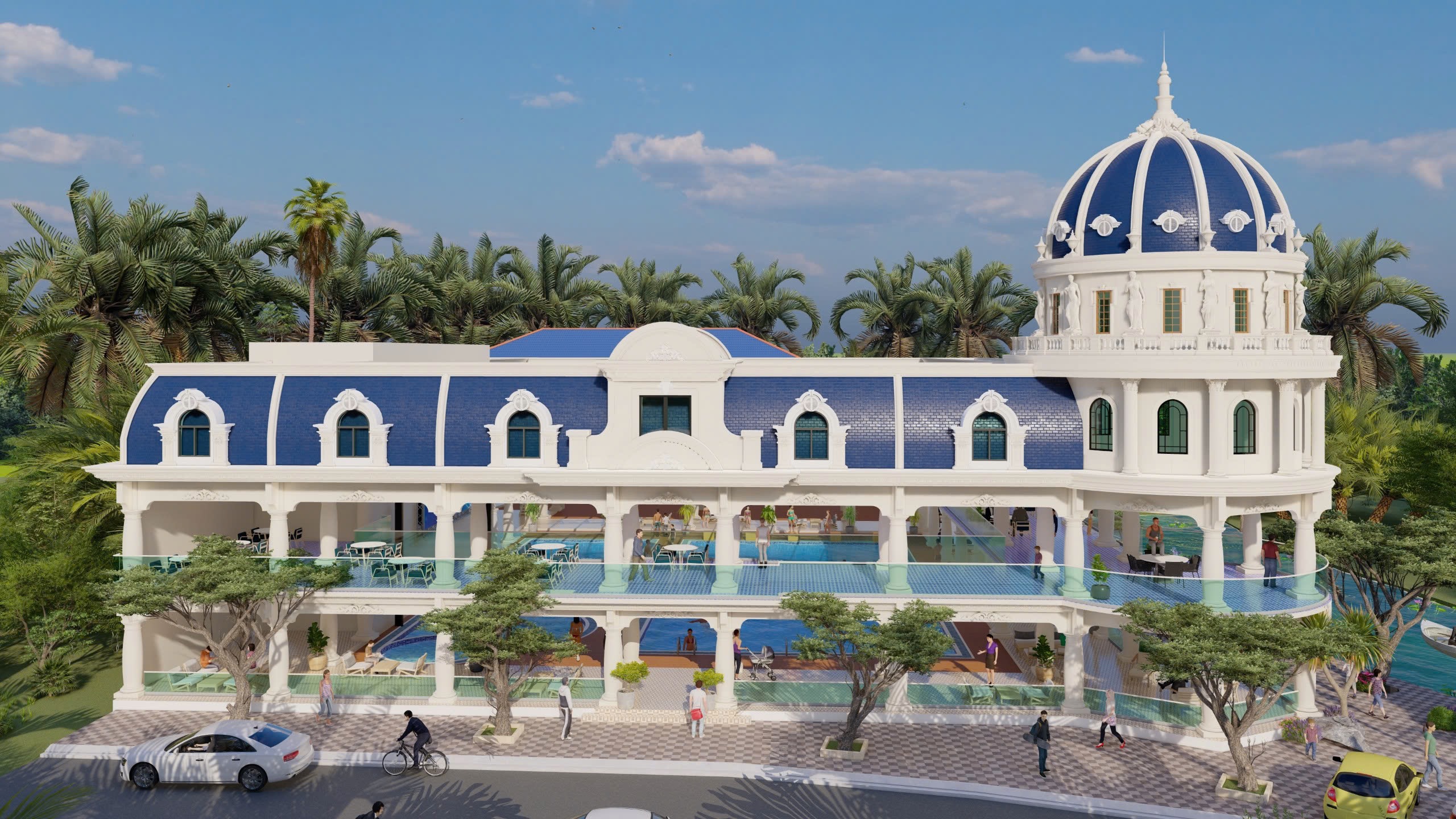 Các đường viền hồ bo cong mềm mại tạo cảm giác tự nhiên, giúp tổng thể công trình hòa quyện hài hòa với không gian cảnh quan xung quanh.